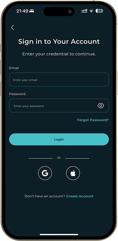 You can register by providing your information directly on the app or by using your Apple ID or Google account for quick and secure access. Simply download the app and choose your preferred sign-up method.